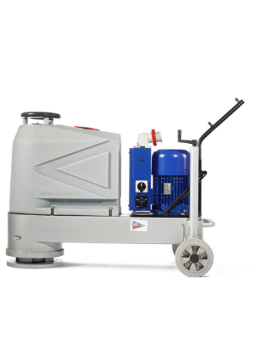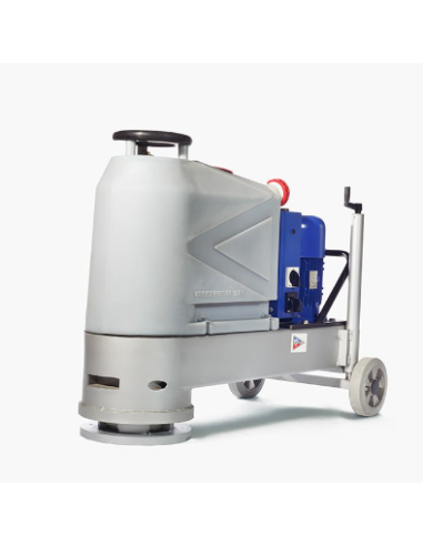 Máquina pulidora de rebajar. Indicada para regularizar superficies desiguales. Muy utilizada para darle mayor planimetría y eliminar resaltes de suelos nuevos recién colocados o instalados para conseguir una mayor planimetría y después para afinar el rebaje de suelo inicial. Máquina se equipará con un plato 300 mm. Una de sus principales virtudes es que gracias a su husillo de elevación le permite llevar la máquina totalmente plana para un trabajo de pulido de alta calidad.